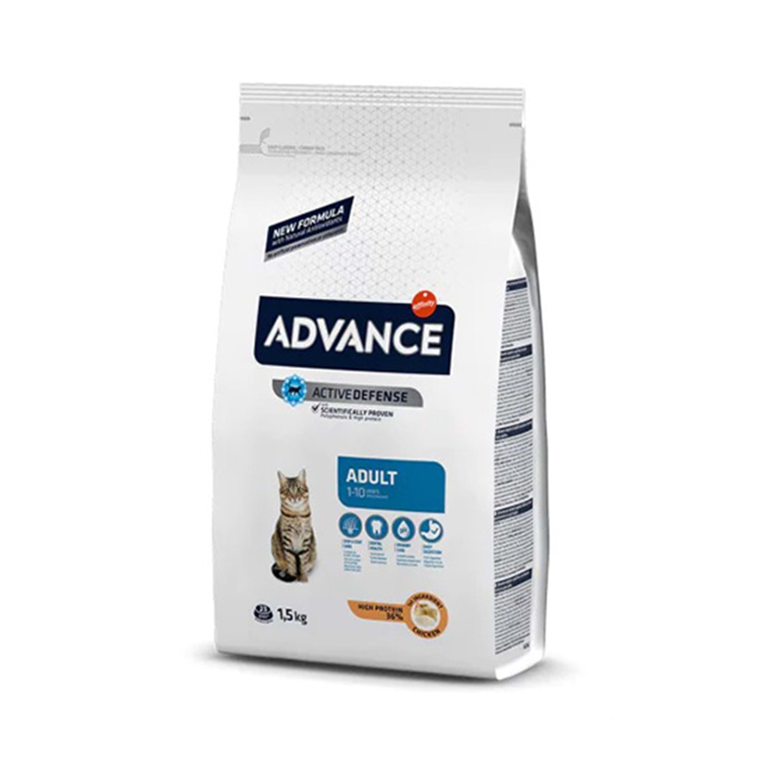 1 - 10 yaş arası kediler için protein kaynağı olarak tavuk, karbonhidrat kaynağı olarakta sindirimi kolay olan pirinç kullanılarak hazırlanmış yetişkin kedi mamasıdır. Advance, vitamin E, vitamin C, bioflavonoidler, selenyum, çinko, bakır, manganez ve taurinden oluşan antioksidan sistemi ile hücresel yaşlanmayı engeller ve sağlıklı yaşamı uzatarak yaşlanmayı geciktirir.